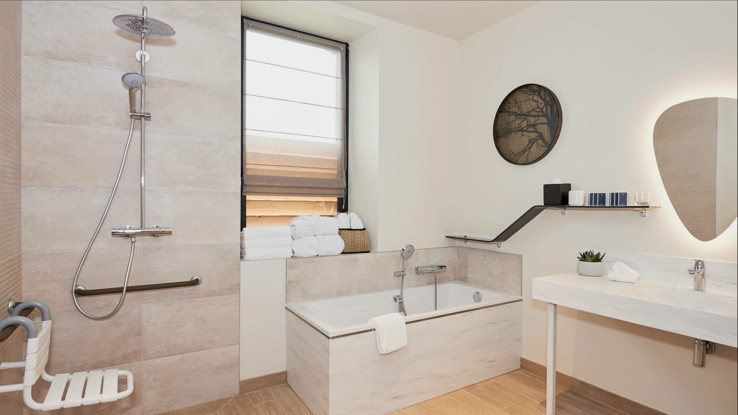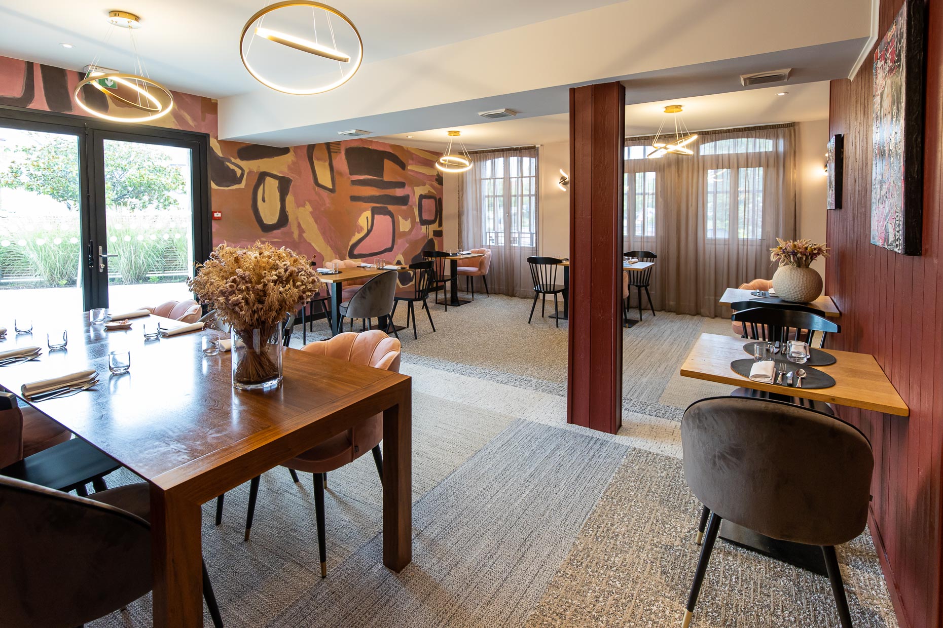 Dans le prolongement de cette métamorphose, le restaurant bistro révèle lui aussi une nouvelle identité. La salle, entièrement réagencée et pensée dans ses moindres détails, accueille ses convives dans une atmosphère chaleureuse et équilibrée. Chaque élément trouve naturellement sa place. Les matériaux, les volumes et les lumières dialoguent pour créer une harmonie douce, fidèle à l’esprit de la maison. Ici, tout est conçu pour que l’on s’y sente bien.